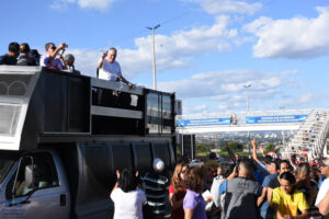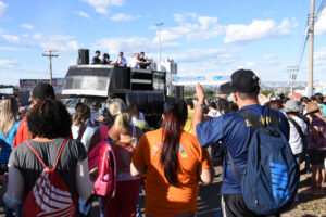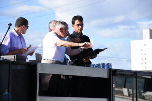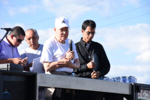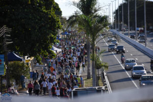 Às 15h30, o arcebispo Dom Washington Cruz deu sua tradicional bênção, no início do trevo Goiânia -Trindade, e salientou que a romaria é uma representação da própria vida, em que os peregrinos caminham à casa do Pai Eterno, fazendo um percurso de penitência e gratidão, buscando a reconciliação com Deus e desejando ansiosamente chegar à pátria celeste. “Em cada passo na direção do Santuário, deixemos que o Pai Eterno nos renove a fé, a esperança e o vigor para a nossa missão na Igreja, na família e na sociedade, sempre movidos pela prática da caridade”, disse o arcebispo. Dom Washington pediu ainda que, durante a caminhada, todos pudessem deixar as mágoas e as indiferenças no passado, rumo à vida nova, no encontro com Deus. Após a bênção, ele caminhou um trecho da rodovia dos romeiros, junto com os fiéis.