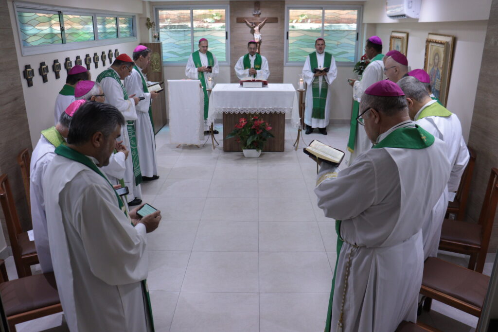 Na manhã desta terça-feira, 25, a Santa Missa foi presidida por Dom Lindomar Rocha Mota, bispo diocesano de São Luís de Montes Belos (GO). Nesta quarta-feira, os bispos têm assessoria com a Irmã Regina, diretora nacional das Pontifícias Obras Missionárias (POM) sobre o COMIRE (Conselho Missionário Regional).