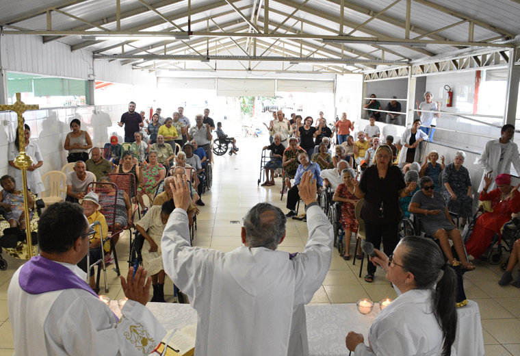 O abrigo é presidido pelo confrade Florentino Luiz Ferreira, que participou da missa celebrada por Dom Washington Cruz no local, no último dia 16, ao lado de José Ari Borges ‒ representante do Conselho Metropolitano de Goiânia da SSVP ‒, de voluntários e da equipe multiprofissional que trabalha com os abrigados, pela superação dos problemas e sofrimentos decorrentes do processo de envelhecimento e da perda de vínculos afetivo- familiares. Os pacientes que participaram da celebração receberam a comunhão das mãos de ministros da Eucaristia e do nosso arcebispo, que levou a Hóstia consagrada aos acamados. Na oração final, Dom Washington elevou aos céus uma prece: "Que esta Santa Missa represente uma bênção de Deus para cada um que está aqui e para a direção deste abrigo. Senhor, sejamos transformados pelo remédio do vosso amor!".