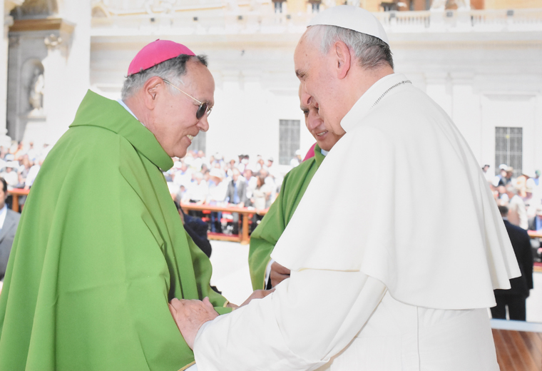 A Arquidiocese de Goiânia, todo o Povo de Deus: pastores, membros da vida consagrada, fiéis leigos e leigas, desejamos manifestar nossa plena comunhão e total fidelidade ao Vosso Ministério Petrino. Reconhecemos que o Ministério de Pedro e um Ministério de Comunhão. Estamos dispostos a dar nossas vidas para viver com o Sucessor do Apóstolo Pedro e, entre nós, nesta lgreja particular, uma autentica espiritualidade de comunhão.