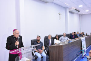 O reitor da PUC Goiás, professor Wolmir Amado, apresentou o tema da Campanha da Fraternidade e explicou que “Esta audiência tem como objetivo estimular a participação em políticas públicas à luz da Bíblia e da Doutrina Social da Igreja Católica, para fortalecer a cidadania e o bem comum, por meio de ações e programas desenvolvidos pelo Estado”.