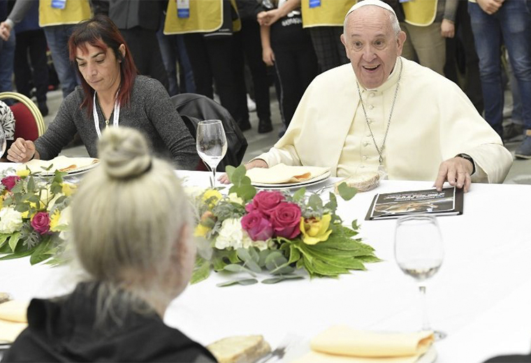 Nas comemorações do III Dia Mundial dos Pobres, o Papa Francisco almoça com os pobres na Sala Paulo VI depois da Missa e do Angelus