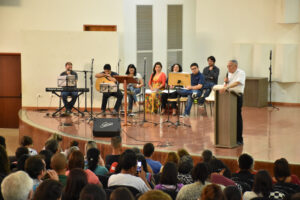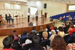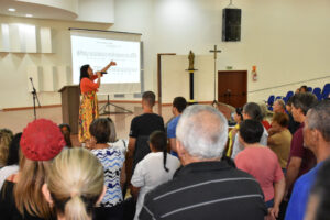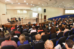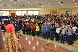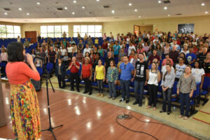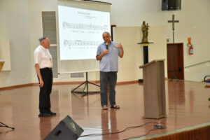 A Escola de Ministérios, por meio da Coordenação do Canto Litúrgico, realizou, no último sábado (26), o 47º Curso de Canto Litúrgico da Arquidiocese de Goiânia. O curso teve participação de mais de 400 pessoas, entre elas, músicos, instrumentistas e representantes de equipes de Liturgia, que estiveram reunidos por toda manhã no Auditório Mãe da Igreja, no Centro Pastoral Dom Fernando (CPDF), das 8h às 13h.