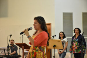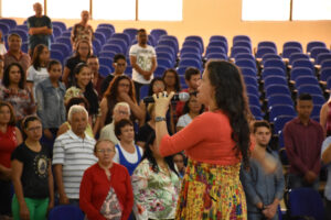 “Participo da equipe de canto em Aparecida de Goiânia e, para mim, é importante participar do curso, pois é a oportunidade de aprimorar o conhecimento dos cantos e em qual tempo litúrgico devem ser cantados. Para nós, que fazemos parte da comunidade e nos colocamos a serviço da Igreja, é fundamental estar aqui, para depois colocar em prática o aprendizado em nossas comunidades, onde somos canal da graça de Deus através da música.” Doracy , Paróquia Nossa Senhora do Rosário.