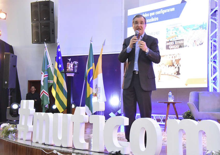 Em palestra ministrada na tarde desta sexta-feira (19), o reitor da PUC Goiás, professor Wolmir Amado, discutiu o tema: “Democracia: