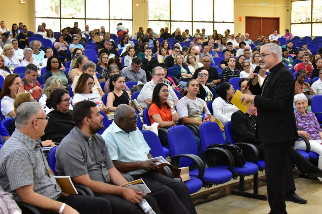 Logo após a oração, o bispo auxiliar de Goiânia, Dom Danival Milagres, presidente da comissão responsável pela elaboração das diretrizes, expôs o processo de concepção do documento, bem como suas principais orientações para o uso pastoral nas paróquias e comunidades. Dom Danival ressaltou que o livreto “é um instrumento para vivermos a comunhão. E essa comunhão acontecerá quando todos se debruçarem para estudar e viver os documentos que nos ajudam a caminhar juntos”.