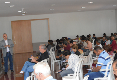 A Escola de Ministérios retornou as atividades do segundo semestre, com o Encontro de Formação para Ministros da Palavra, na manhã do dia 5 de agosto, sábado. Mais de 100 ministros participaram do encontro, que teve como tema “Metas, Objetivos e Família”, assessorado pelo presidente da Escola Sul Americana de Coaching, Emerson Silva, mestre em Administração e master em coaching. Emerson levou os Ministros da Palavra a fazerem uma reflexão sobre a relação deles com a família. “Será que as famílias de vocês estão inseridas em suas metas, objetivos e sonhos?”. O coaching destacou ainda a importância de a família apoiar e acompanhar o ministério exercido pelos ministros.