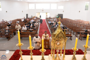 A Paróquia Sagrado Coração de Jesus, que celebrou a festa do padroeiro do dia 16 a 25 de junho, acolheu, na manhã do dia 23, a Jornada de Oração pela Santificação do Clero. Padres de várias paróquias da nossa Arquidiocese participaram da palestra e da adoração ao Santíssimo Sacramento, momento conduzido pelo bispo auxiliar Dom Moacir Arantes.