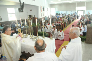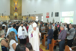 Dom Levi, em sua homilia, deu destaque ao dia que a paróquia escolheu para dar início à celebração do Jubileu de Diamante. “Hoje é um dia muito especial, porque Deus se manifesta a nós pela Santíssima Trindade. Às vezes não sabemos a quem rezar, mas isso não é o mais importante, porque o essencial é se colocar diante de Deus, sempre”, sublinhou. Sobre a vivência do Ano Jubilar, ele orientou: “Não é apenas uma festa material ou só de confraternização. É um tempo de graça para manifestar a bondade e a caridade ao próximo. É um ano para ser mais misericordioso, e não podemos concluir o Jubileu saindo da mesma forma que entramos. Não! Precisamos ser melhores”, disse.