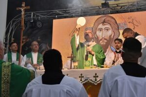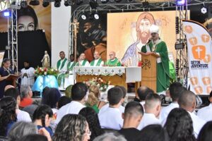 Em sua homilia, Dom João, disse aos jovens que é possível sermos santos em qualquer lugar, e listou três exemplos. “Em primeiro lugar, podemos ser santos, na família. Esse é o primeiro lugar que conseguimos exercer o serviço do amor, do bem-querer e da benevolência. Em segundo lugar, são aqueles outros ambientes que você frequenta no seu cotidiano. O lugar onde você encontra outras pessoas. Jesus nos pede que sejamos bons com todos. E em terceiro lugar, nas redes sociais. São pequenas coisas que compartilhamos nas redes que podem aproximar ou distanciar as pessoas”, destaca o Arcebispo. Dom João incentivou os jovens a rezar antes do uso das redes sociais para que elas possam ser usadas para o bem. E ainda afirmou, “lembre do que Jesus disse: ‘Quem não tem pecado algum, que atire a primeira pedra’", completou Dom João Justino.