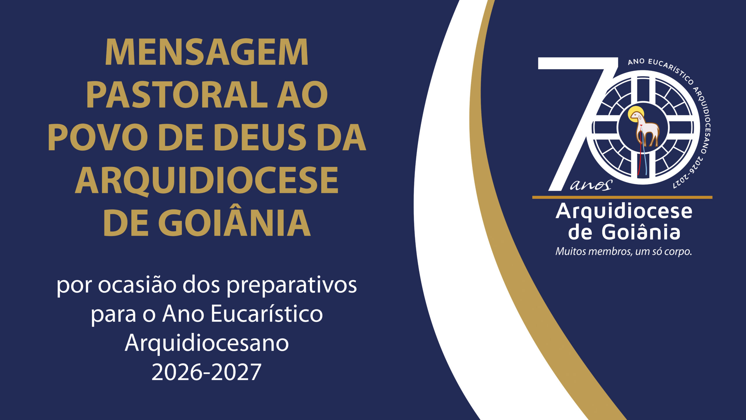 Desejamos, com esta mensagem, animar a todos os irmãos e irmãs de nossas comunidades eclesiais para a vivência do Ano Eucarístico Arquidiocesano, tempo de graça, que nos preparará espiritual e pastoralmente para sediar e celebrar, em Goiânia, o 19º Congresso Eucarístico Nacional (CEN), de 3 a 7 de setembro de 2027, com o tema “Hóstias vivas, no mundo, para a glória do Pai”. Para esse Congresso foi preparado um texto-base que aprofunda o tema e que poderá inspirar momentos especiais de catequese eucarística em nossas comunidades.