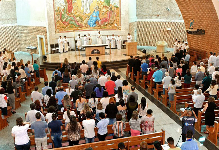 O aniversário de 59 anos da PUC Goiás foi celebrado pelo arcebispo de Goiânia e grão-chanceler da universidade, dom Washington Cruz, em missa na Paróquia Universitária São João Evangelista, na manhã desta quarta-feira, 17. A missa recebeu a comunidade universitária e foi marcada pelo início do ano jubilar e pelo lançamento do hino do Jubileu da PUC, com letra do reitor Wolmir Amado e música de Flaviano da Silva.