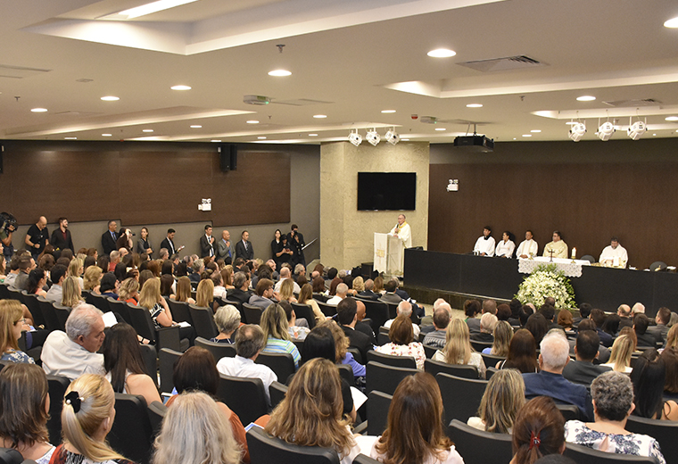 A celebração religiosa foi conduzida pelo arcebispo de Goiânia, Dom Washington Cruz. Ele pediu as bênçãos de Deus para que a gestão do desembargador Walter Carlos Lemes (biênio 2019/2021) seja iluminada e que Ele ajude o novo presidente do TJGO a ser perseverante em sua missão, agora e por toda a sua vida. “À luz da fé cristã, sabemos que esse não é apenas um cargo, dentro de uma carreira institucional”, observou o arcebispo, ressaltando que servir à Justiça é uma graça de Deus.