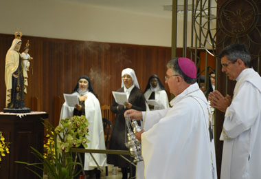 No final da missa, Dom Levi abençoou e fez a imposição do escapulário em várias pessoas, que receberam esse símbolo de devoção que nos faz lembrar frequentemente do nosso amor à Virgem Maria e da sua bendita proteção. Nossa Senhora prometeu aos que vivessem e morressem com o escapulário – ou com a medalha, devidamente abençoada, do Sagrado Coração e da Virgem do Carmo, que o substitui – a graça de obterem a perseverança final, isto é, uma ajuda particular para se arrependerem nos últimos momentos de suas vidas, caso não estejam em estado de graça.