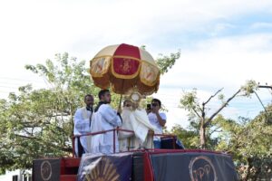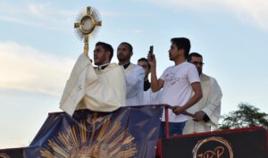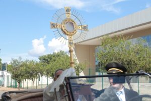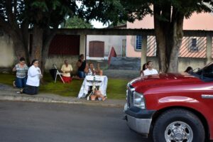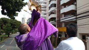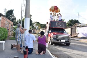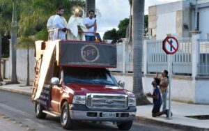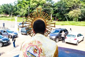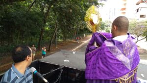 No último domingo, dia 29, a exemplo do que fez Dom Washington, de helicóptero, muitos padres da nossa arquidiocese percorreram as ruas de suas paróquias de carro, levando o Santíssimo (a hóstia consagrada, no ostensório) e abençoando os fiéis. Das portas de seus lares, as pessoas acenavam para Jesus, pedindo proteção e bênção para suas famílias. Ao passarem, os padres estimulavam que os paroquianos ficassem em casa, alimentando sua fé e esperança.