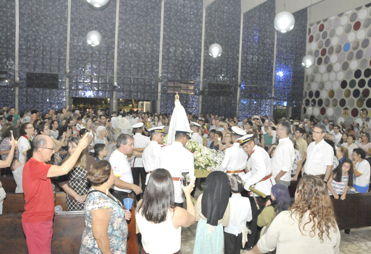 No dia 13, a missa solene foi presidida pelo arcebispo Dom Washington Cruz, às 18h. A festa deste ano teve como tema “Com Maria, somos todos missionários!”. Em sua homilia, o arcebispo recordou as aparições de Fátima, em 1917, sempre pontuando as virtudes de Maria, como serva fiel de Deus. Ele também parabenizou todas as mães presentes, declamando um poema para elas.