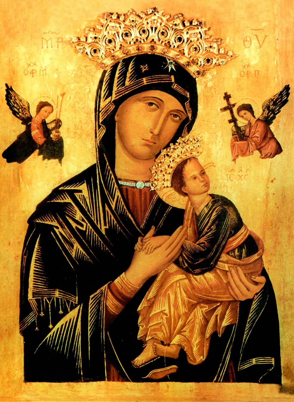 A devoção à Nossa Senhora do Perpétuo Socorro começou a ser propagada a partir de 1870 e espalhou-se por todo o mundo. Trata-se de uma pintura do século XIII, de estilo bizantino. Segundo a tradição, foi trazida de Creta, Grécia, por um negociante. E, desde 1499, foi honrada na Igreja de São Mateus in Merulana.