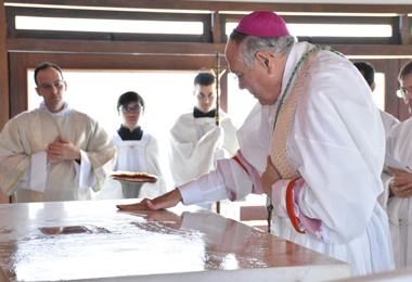 A capela do Seminário Menor São João Paulo II foi reinaugurada no dia 22 de outubro, em missa presidida pelo nosso arcebispo. Na ocasião, Dom Washington Cruz consagrou o altar da capela, dando assim continuidade às celebrações do Jubileu dos Seminários, que começou no dia 15 de setembro e segue até 15 de setembro de 2018. “Estamos aqui para abençoar as instalações deste novo seminário menor da Arquidiocese de Goiânia, pela celebração do sacrifício do Senhor”, destacou em sua homilia. Em seguida, ele explicou que a casa de formação se destina aos adolescentes e jovens que sentem o chamado vocacional ainda em tenra idade. “Por meio dos formadores, a Igreja os acompanha, ajudando-os no processo de discernimento vocacional”, disse ele, citando a Exortação Apostólica Pastores Dabo Vobis, de São João Paulo II. “Demos graças a Deus pela realização desta obra e apresentemos ao Senhor todos os que lutaram para que hoje tivéssemos a alegria de ver este seminário construído: capela, altar e seminário”, rezou o arcebispo. Durante a missa, Dom Washington abençoou e colocou no altar as relíquias de Santa Maria Goretti, italiana, mártir da Igreja no século XIX.