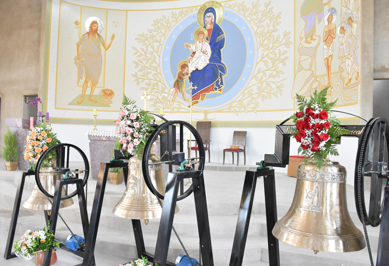 Durante a celebração, padre Vitor abençoou e batizou os três sinos, que juntos pesam quase 600 quilos. O maior, de 180 quilos, homenageou o padroeiro da paróquia, São João Batista. O médio homenageou o Sagrado Coração de Jesus, já que a comunidade tem a participação numerosa do Apostolado da Oração, e o menor foi dedicado à Santa Maria Mãe de Deus. Os três sinos compõem um carrilhão clássico com tons nas notas musicais dó, ré, mi