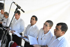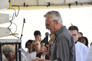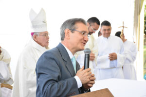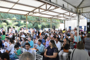 O reitor da PUC, Prof. Wolmir Amado, deu boas-vindas aos presentes, convidou toda a população a participar da jornada e puxou o Canto dos Parabéns a Dom Washington, que celebra, nesta sexta-feira (25), 72 anos de idade.
