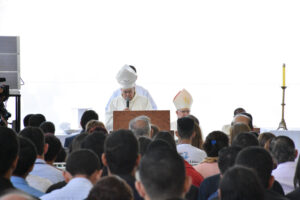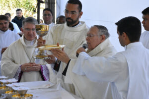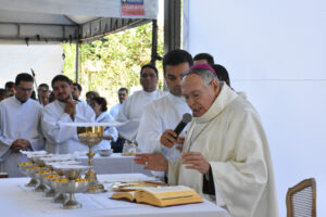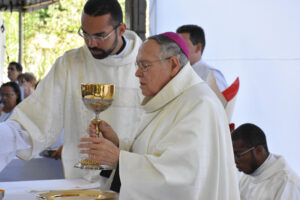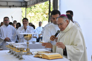 Na manhã desta quinta-feira (24), festa de Nossa Senhora Auxiliadora, Padroeira da Arquidiocese e da cidade de Goiânia, o arcebispo e chanceler da PUC Goiás, Dom Washington Cruz, presidiu missa de abertura da 5ª edição da Jornada da Cidadania. O evento, que segue até amanhã (26), no Centro de Convenções da universidade, no Jardim Mariliza, espera neste ano receber, nos três dias, mais de um milhão de pessoas. “A expectativa da universidade deveria ser maior, tendo em vista quantas pessoas estamos vendo participar do evento só hoje”, disse Dom Washington, na missa.