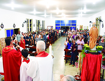 Dom Moacir S. Arantes, bispo auxiliar da Arquidiocese de Goiânia, celebrou a solenidade na Paróquia São Pedro, no Bairro Feliz. A celebração teve início às 19h, com uma procissão. Em sua homilia, o bispo fez alusão às realidades da vida, nas quais, muitas vezes, é preciso passar por períodos de escuridão. Mas, assim como a luz dos postes ilumina a rua, Jesus é a luz que ilumina a vida do cristão.