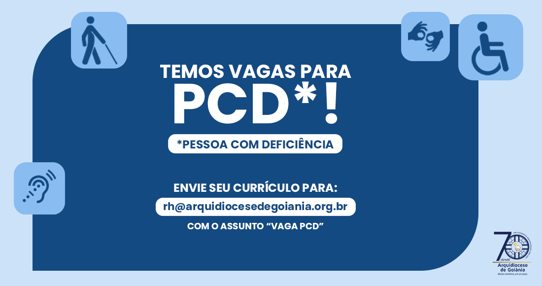 Os interessados devem enviar o currículo para o e-mail rh@arquidiocesedegoiania.org.br, com o assunto “Vaga PCD”.
